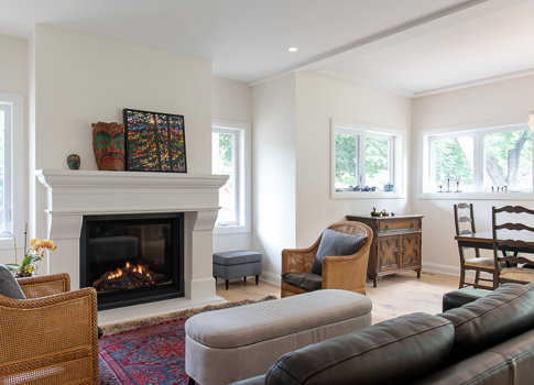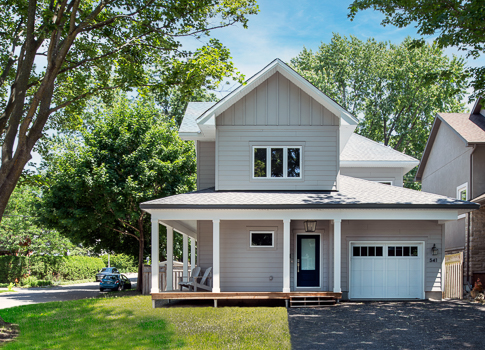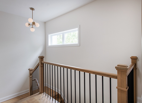 We began with an existing structure intended for renovation, but when serious structural issues arose, we rebuilt from the ground up. This allowed for a redesign with complete intention, balancing the home’s scale, functionality, and natural context. Guided by the City of Ottawa’s Tree Preservation Society, we carefully planned the new layout around a mature Norway Maple, framing it with projecting gables and generous windows that draw light and views through every level.
