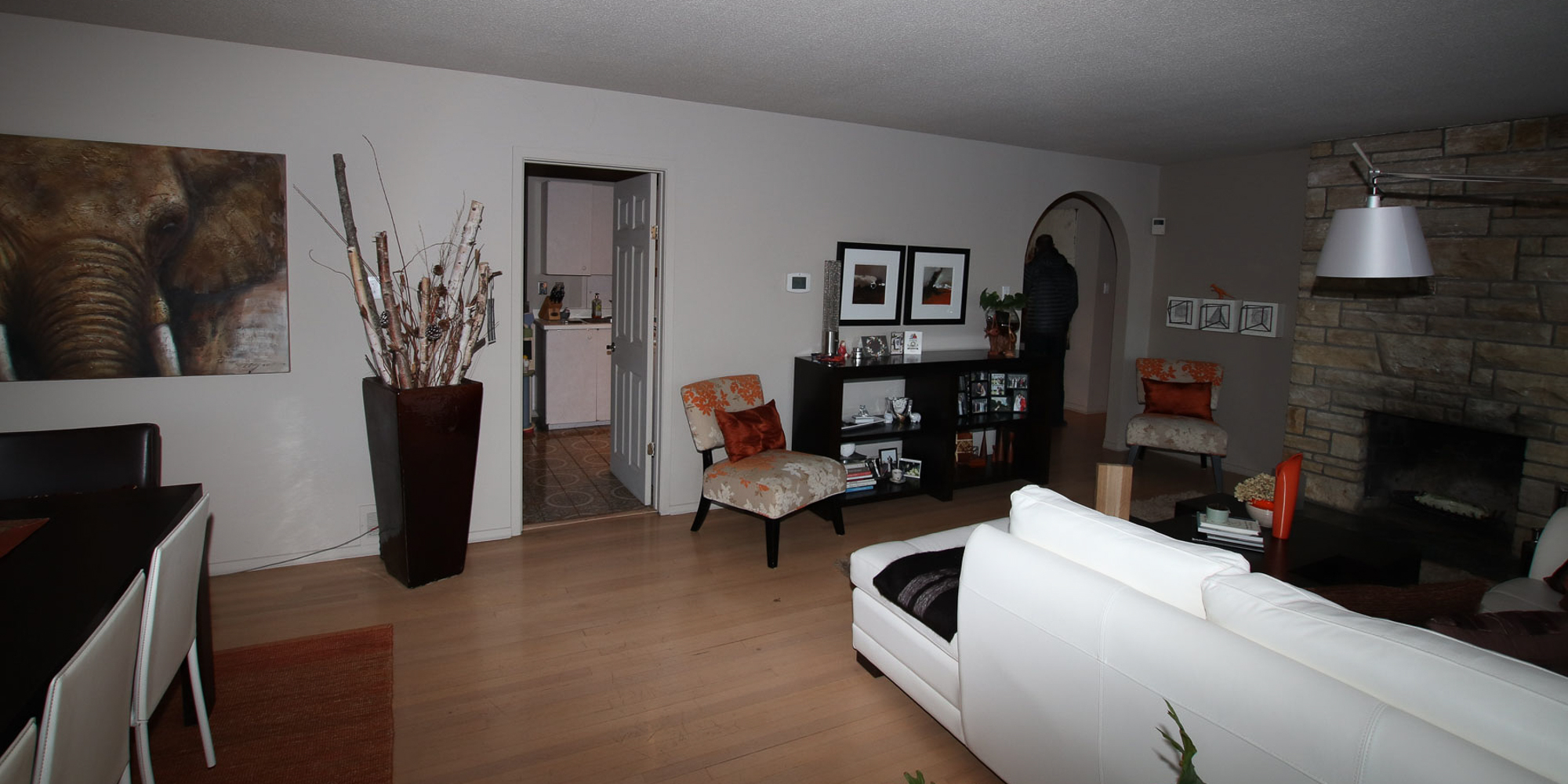 We transformed the previously enclosed galley kitchen and dining area into a spacious, modern hub with an expanded kitchen, wet bar, and added seating. By removing the foyer closet, we introduced more natural light and improved flow, creating an open layout designed for both everyday living and entertaining. The result is a main floor that feels bright, functional, and welcoming.
