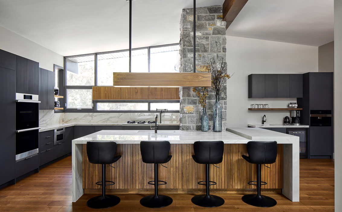 To preserve sightlines and maintain clean lines, we engineered a bespoke downdraft ventilation system concealed below the cooktop, eliminating the need for a visible hood. A multi-functional island integrates a cold shelf, sink, and seating, while hidden storage, wide clearances, and zero-threshold transitions enhance accessibility without compromise. Unified walnut detailing and panel-ready appliances tie every room together, delivering a sophisticated balance of craftsmanship, comfort, and cohesion, all within the home’s original footprint.