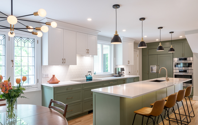 This main floor kitchen renovation introduced an open, flexible layout filled with personality. With a new island, custom storage, and a bar area, the design created a bright, functional hub that supports daily living and effortless entertaining.